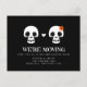This fun Halloween-themed moving announcement postcard features an illustration of a pair of skulls on the front. The background colour is customizable and all of the text is editable. Use it to share your new address or to invite friends to a Halloween themed house warming party.