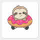 The sloth is sitting in a doughnut with colourful sprinkles. Sloths are cute animals for kids. For friends who love sloths and doughnuts, the perfect combination.