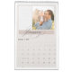 An elegant calendar with flowing script, textured background, a place for writing notes, and your favourite photo