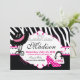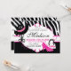 This sophisticated invitation is perfect for any age. Completely customizable, change the information, child's name, age and time. The back is versatile, add a message to your guests or direction to the party! Black & White Zebra print with pink accents. Other matching items are also available in our store! Enjoy!