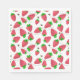 The Sweet Strawberries Buzzing Bees Birthday Party Napkins bring a fresh and playful charm to any birthday table. Set against a clean white background, bright red strawberries are scattered throughout the design, each illustrated with a sweet, whimsical touch. Delicate bees flit between the berries, leaving dotted trails that dance across the napkin, creating a sense of light-hearted motion and celebration.