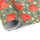 Sweet Strawberry Meadows Cute Fruit in Olive Green Wrapping Paper