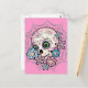 Dia de los Muertos (Day of the Dead) sugar skull designed in pastel colours with flowers set on a spider web.