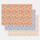 Dessiné à la main. la coordination des designs dans des couleurs vives et joyeuses de ma collection Bee Lines. Une feuille d'empreintes florales de coccinelle, une feuille de champignons de fraise et une feuille de coccinelle sur le bleu.