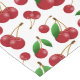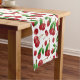 Bright red cherries table runner features a pattern of paired and single falling cherries dropping into the collection basket with stems and leaves still intact - white background is customizable - by katz_d_zynes