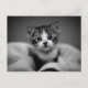 Black and white photograph of a very cute tabby kitten with beautiful blue eyes, sitting on a blanket. Great gift for yourself or the cat lover in your life.