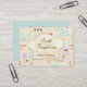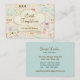 Fun whimsical bakery business card or event catering business full of delightful sweets, cakes, cupcakes and more in pastel aqua, pink, mauve and ivory with Chef hat banner ready to display your business name. Business Card back is fully customizable by you.