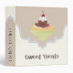Classeur de la recette Sweet Traitements avec un délicieux dessert à la crème glacée sur arrière - plan brun latte avec une cerise sur le dessus sur la moitié supérieure et un cadre d'ivoire sur la moitié inférieure. Un joli organisateur de recettes girly pour vos recettes de dessert ou pour le donner en cadeau. Sur le fond, un autre dessert à la crème glacée au chocolat est installé dans un haut verre couleur aqua. Couleurs : latte, ivoire, jaune, vert pâle, marron, rose, rouge.