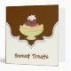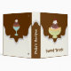 Classeur de la recette Sweet Traitements avec un délicieux dessert à la crème glacée sur arrière - plan brun avec une cerise sur le dessus sur la moitié supérieure et un cadre en ivoire sur la moitié inférieure. Un joli organisateur de recettes girly pour vos recettes de dessert ou pour le donner en cadeau. Sur le fond, un autre dessert à la crème glacée au chocolat est installé dans un haut verre couleur aqua. Couleurs : ivoire, jaune, vert pâle, brun, rose, rouge, aqua.