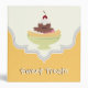 Sweet Traits jaune, recette d'ivoire classeur avec un délicieux dessert à la crème glacée avec une cerise sur le dessus sur la moitié supérieure et un cadre jaune sur la moitié inférieure. Un joli organisateur de recettes girly pour vos recettes de dessert ou pour le donner en cadeau. Sur le fond, un autre dessert à la crème glacée au chocolat est installé dans un haut verre couleur aqua. Couleurs : rose, ivoire, aqua, jaune, vert pâle, marron, rouge.