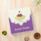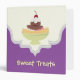Sweet Traitements violet, recette d'ivoire classeur avec un délicieux dessert à la crème glacée avec une cerise sur le dessus sur la moitié supérieure et un cadre violet sur la moitié inférieure. Un joli organisateur de recettes girly pour vos recettes de dessert ou pour le donner en cadeau. Sur le fond, un autre dessert à la crème glacée au chocolat est installé dans un haut verre couleur aqua. Couleurs : rose, ivoire, aqua, jaune, vert pâle, marron, rouge, violet.