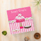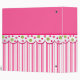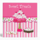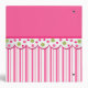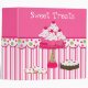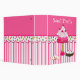 Pretty bakery or desert recipe binder done in pink and white striped background, on the bottom and a solid pink on top. Graphics of a fun polka dot scalloped band runs across the middle separating the two backgrounds. Adorable graphics of iced cookies, brownie, and a cute cake stand, with a bunch of pretty cupcakes decorate the front of the binder. White text, at the top, reads Sweet Treats and is customizable to say anything you want. Great for using as a bakery portfolio or in your kitchen for all your loose recipes. All inserts and sleeves are sold separately at your local discount, office supply or craft stores.