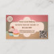 Sweet bakery business card featuring a retro design with cupcakes and a large birthday or wedding tiered cake. With logo and QR code templates.