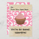 You're So Sweet, Valentine! A pretty pink and white with tan cupcake with frosting, and a heart background pattern. Cute dessert gift for girls in the school classroom or just to express love.