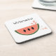 A cute design featuring a juicy slice of pink watermelon with black diamond seeds and a dark green rind.