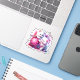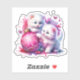 Pretty Christmas sticker with a pink theme. Two little white fluffy kittens playing with a pink sparkly Christmas ornament.