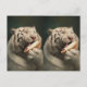 Send a note with charm and humor using this postcard showcasing a white tiger enjoying a creamy slice of pie. Minimal, elegant, and delightfully surreal.