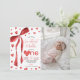 Show off your little one with this watercolor red bow photo invitation. A charming design featuring delicate hearts and space for your favorite picture. Ideal for a "Sweetheart is Turning One" celebration. High-quality watercolor art makes this a keepsake for family and friends.
