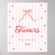 Celebrate the arrival of a little sweetheart with this adorable Valentine's-themed baby shower "Favors" - table sign poster. Featuring elegant pink stripes, cute red hearts and a bow, this design perfectly combines charm and sophistication.