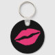 A fun and flirty pink kiss on a black background decorate this keychain.