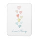 Sweet, hand drawn hearts, falling in an ombre of soft colors, including blue, pink, red, green, and yellow. A lovely way to let somebody you love know that you love them, always.