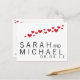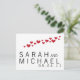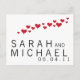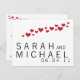 save the date postcard featuring an array of hearts over top the sweethearts' names. Get creative with changing the colour of the background and text for many colour options. For invitations, check out www.darmanddesigns.com.