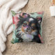 Floral dog art pillow with 'Sweetness' chihuahua design in turquoise and coral red colours