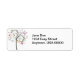 Leaf, swirl, and flower graphics make up this adorable Swept Away tree label. Matching greeting card and postage available.