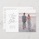 An elegant, classic save-the-date - featuring a font and a single photo script. Additional photos and text could be added to the customizable backer.