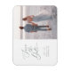 An elegant, classic save-the-date - featuring a script font and a single photo - in magnet form. Additional photos and text could be added to the customizable backer.