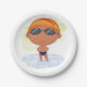 Swimmer Boy in Goggles and Swim Cap Paper Plate