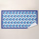 Swimmer icon on a blue circle swimming bath towel set that displays apattern of a minimalist white icon of a swimmer on a two tone blue circle-sea and sky and around it a blue border. The washcloth is white with your monogram while the hand towel includes a two tone blue striped pattern.
