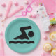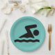 Swimming Design Paper Party Plate. Background colour can be changed to colour of choice (customize-background).