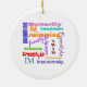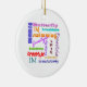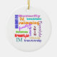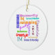 The ornament is very well made. The colors are vibrant and it's well worth the price. My daughter was giving it as a gift to a fellow swimmer, but wanted to keep it for herself. Not a cheap throw away ornament - very nice gift. We didn't have any extra printing on the ornament.