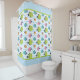 A Cute And Colorful Blue, Green And Pink Shower Curtain For A Kids Bathroom