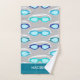 Swimmers will love this sporty towel bundle patterned with a modern swimming goggles pattern in shades of blue and light grey. The hand towel features customisable text for you to add a a name or message