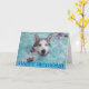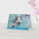Cute swimming husky photograph birthday card. Text on front reads "Happy birthday!" and text inside reads "Hope you have a great day!"