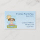 Swimming pool business card with little girl playing in pool on blue background. Suitable for swimming pool sales and service, children's swim lessons, community pools and resorts.