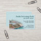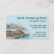A business card design showing a small cascade of water running from a small hot tub down into a swimming pool. This can be used by someone who installs pools and does sales and service and maintenance on the pools.