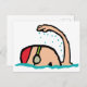 Fun Swimming design features swimmer taking a breath of air as they swim through the blue water.