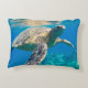 Underwater photograph of a sea turtle swimming in crystal clear water just below the surface.