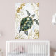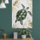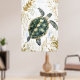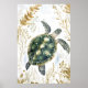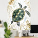 swimming sea turtle surrounded by floral patterns. poster