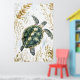Sujet : Une tortue marine nageant entourée de motifs floraux.