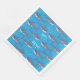 Some cute blue paper napkins for a kid birthday party with a shark or ocean theme . Add your own text using the template or simply remove it .