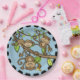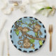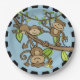 Kids who love animals, especially silly little monkeys will love these colourful and fun swinging monkeys paper plates as an addition to their birthday celebration! Features trees and vines with green leaves, three adorable brown monkeys, a blue sky, and a black decorative pattern edge.