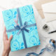 Elegant wrapping paper featuring a turquoise coloured flower and swirl design on a light blue background. This pretty wrapping paper would be perfect for wedding gifts, Mother's Day gifts, retirement gifts, and much more.