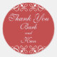 This is the coordinating Thank you Sticker for the Candy Red Swirls wedding line. It is the perfect size for thank you favors and can easily be made smaller for thank you card envelope seals. Let me know if I can help with that.