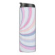 A fun swirl pattern in a colour palette of pink, blue and peach. Personalize with a name.
