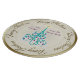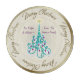 Beautiful charcuterie board with an original digital painting by Leslie Sigal Javorek of a swirly turquoise Christmas tree w/ violet ornaments on a Trompe L'oeil (trick of the eye) background illusion of fine bone china & greater depth. 2 custom text fields to personalize plate for a great gift.