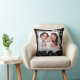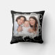 Swirly Custom Photo Mother's Day Pillow. Swirly grey frame with black background. Black and white elegant border design. Features a custom photo to the front and back, great as a gift or for sharing family snapshots!